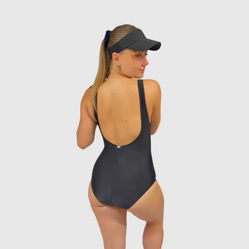Maillot de bain 1 pièce noir femme gainant avec imprimé graphique et décolleté V