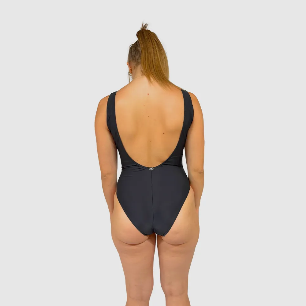 Maillot de bain 1 pièce noir femme gainant avec laçage devant chic et élégant