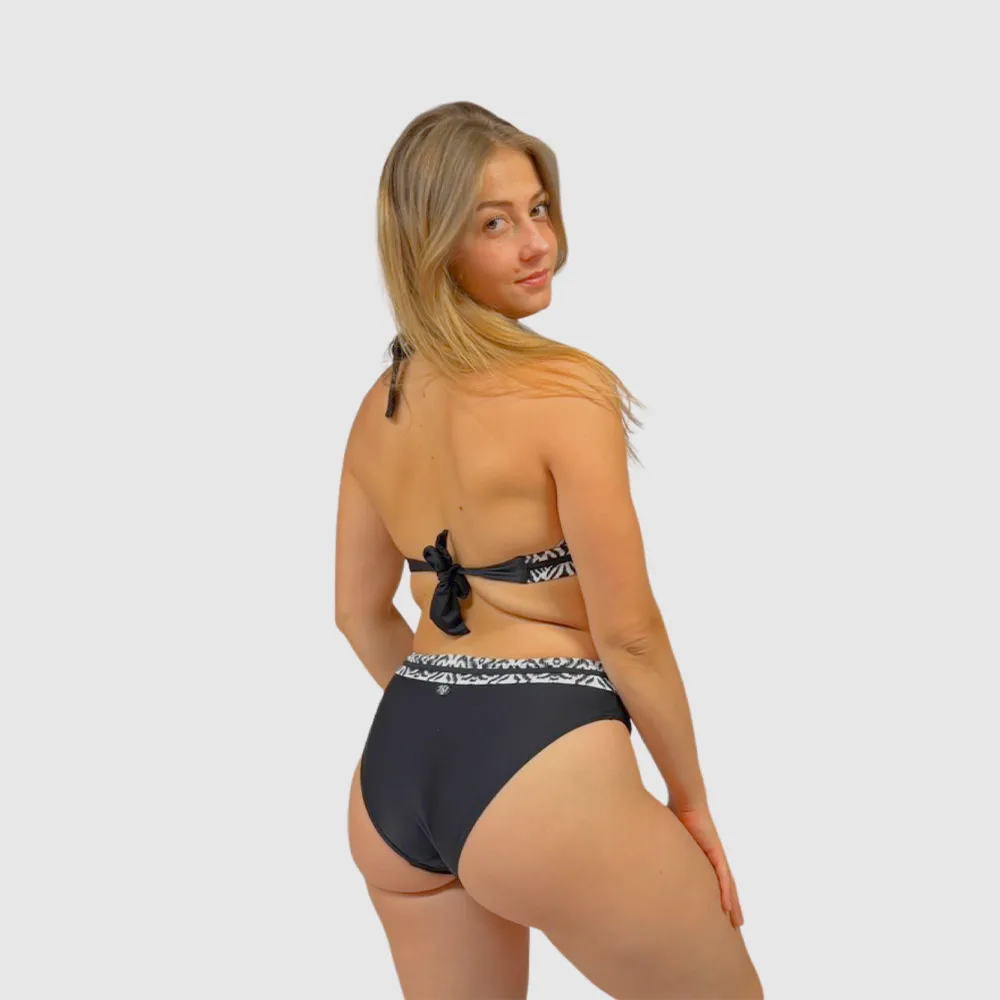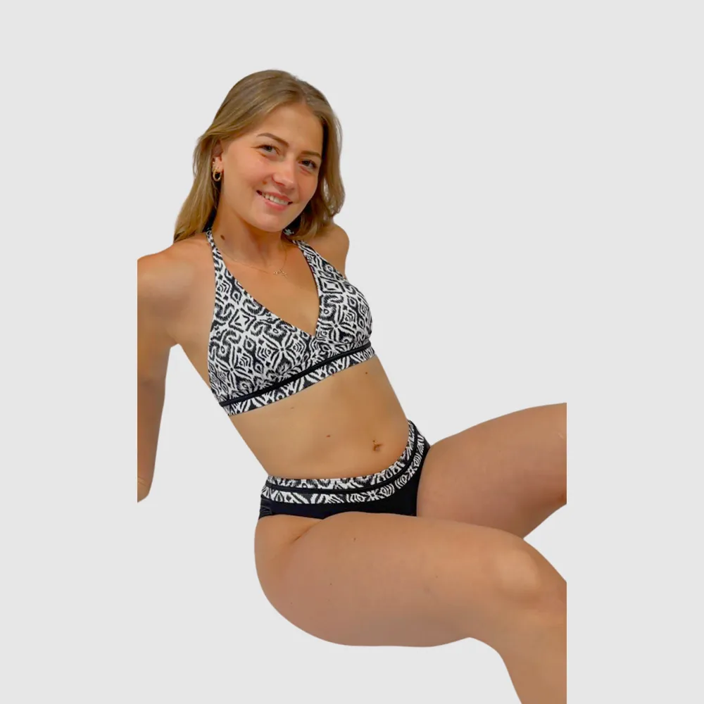 Maillot de bain 2 pièces noir et blanc femme bikini imprimé ethnique triangle