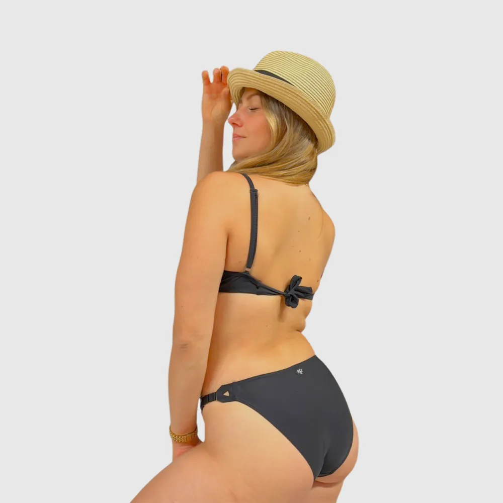 Maillot de bain 2 pièces noir femme bikini bandeau noué devant culotte échancrée