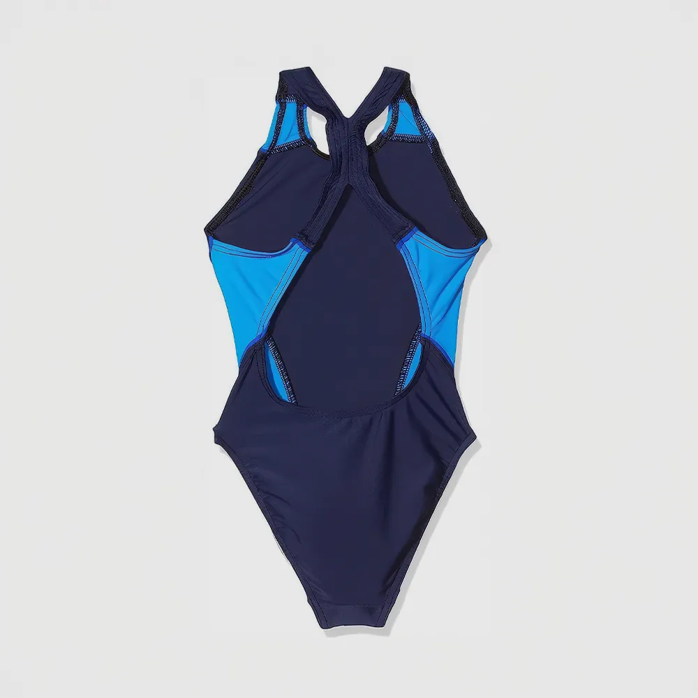 Maillot de bain fille 1 pièce bleu marine et bleu dos nageur croisé sportif maintien confort piscine plage été