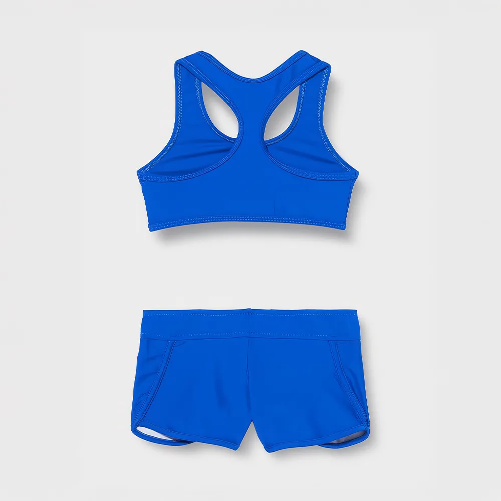 Maillot de bain fille 2 pièces brassière dos nageur bleu electrique shorty assorti sportif confort plage piscine été