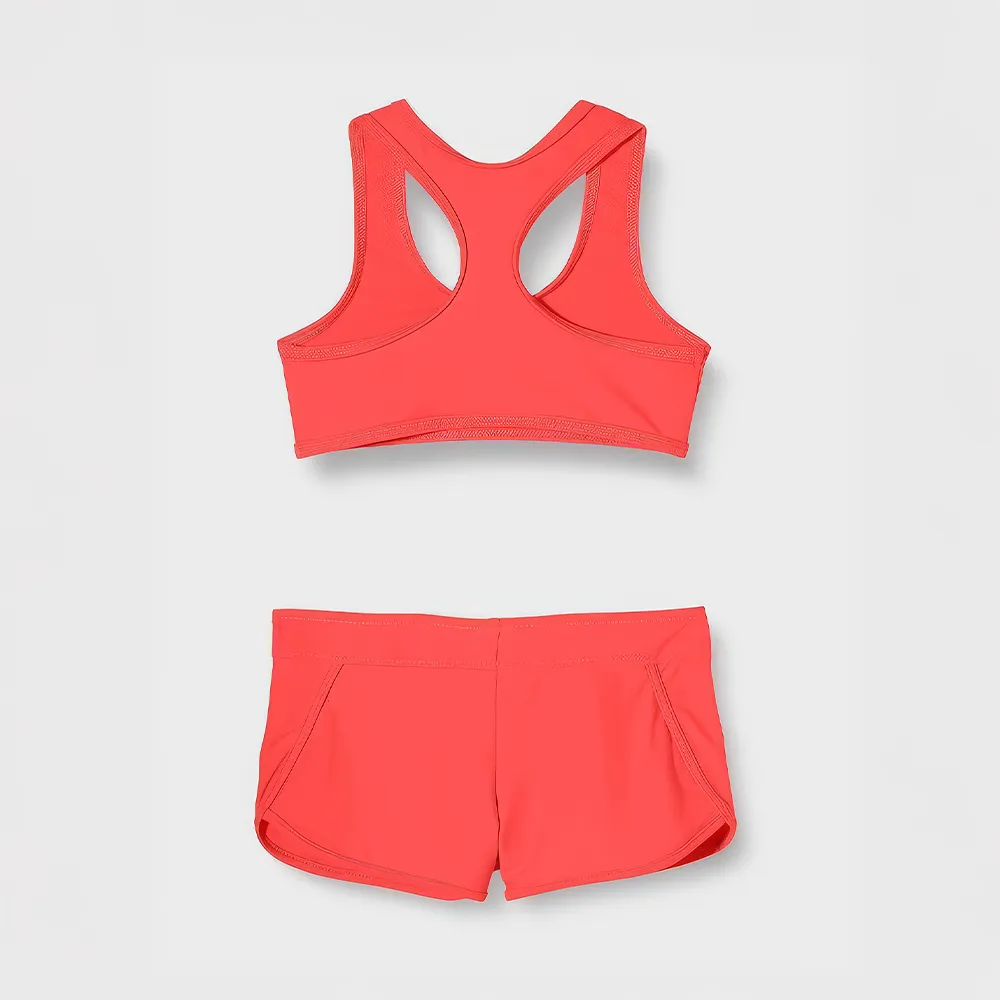 Maillot de bain fille 2 pièces brassière dos nageur corail fluo shorty assorti sportif confort plage piscine été