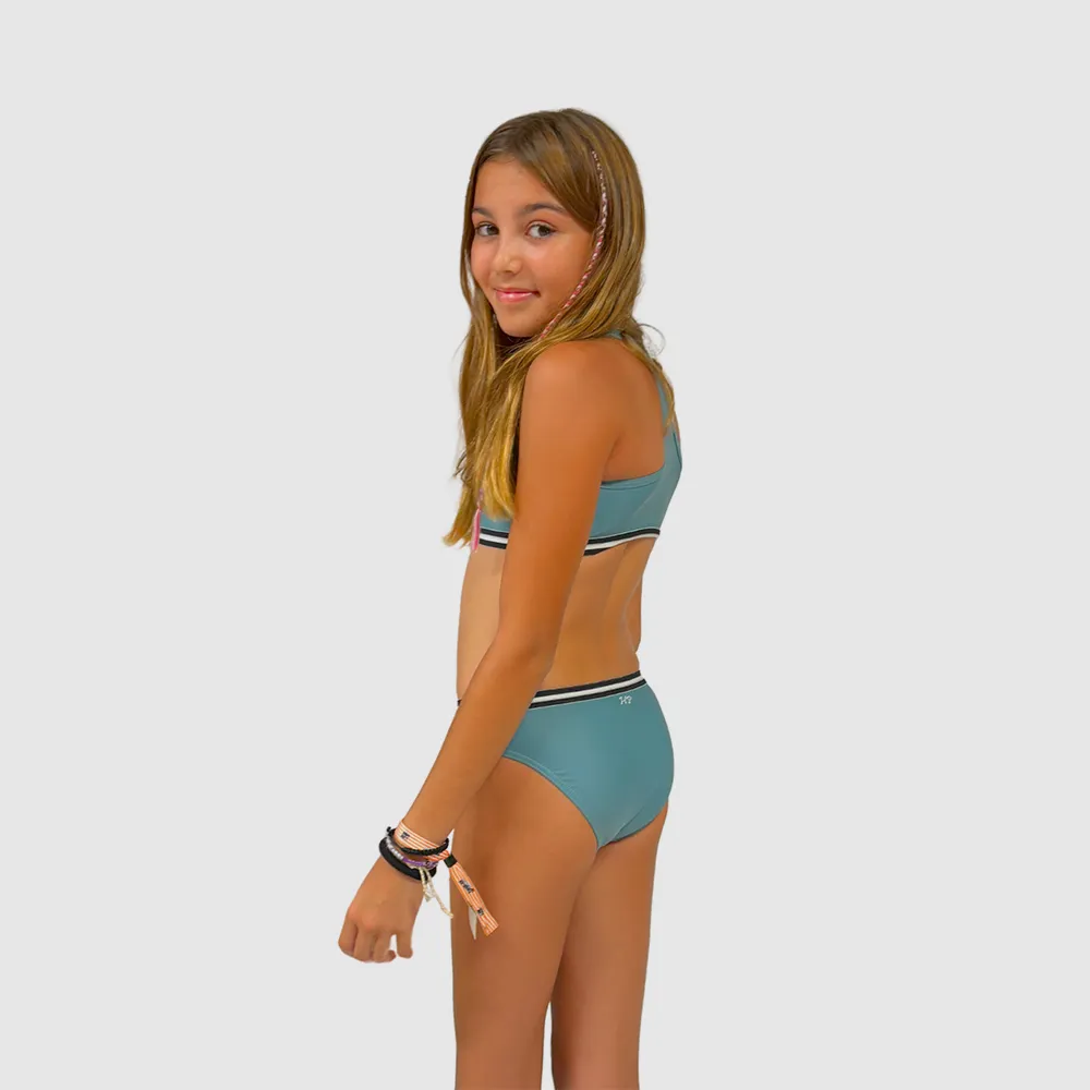 Maillot de bain fille 2 pièces brassière vert gris imprimé South Beach Summer sportif confortable
