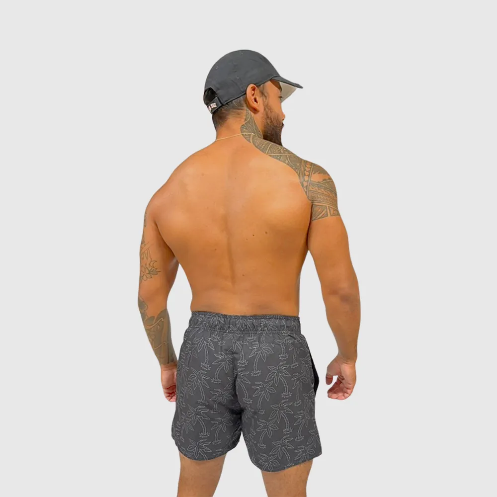 Short de bain homme noir avec imprimé palmiers et cordon orange – maillot de bain homme tendance été