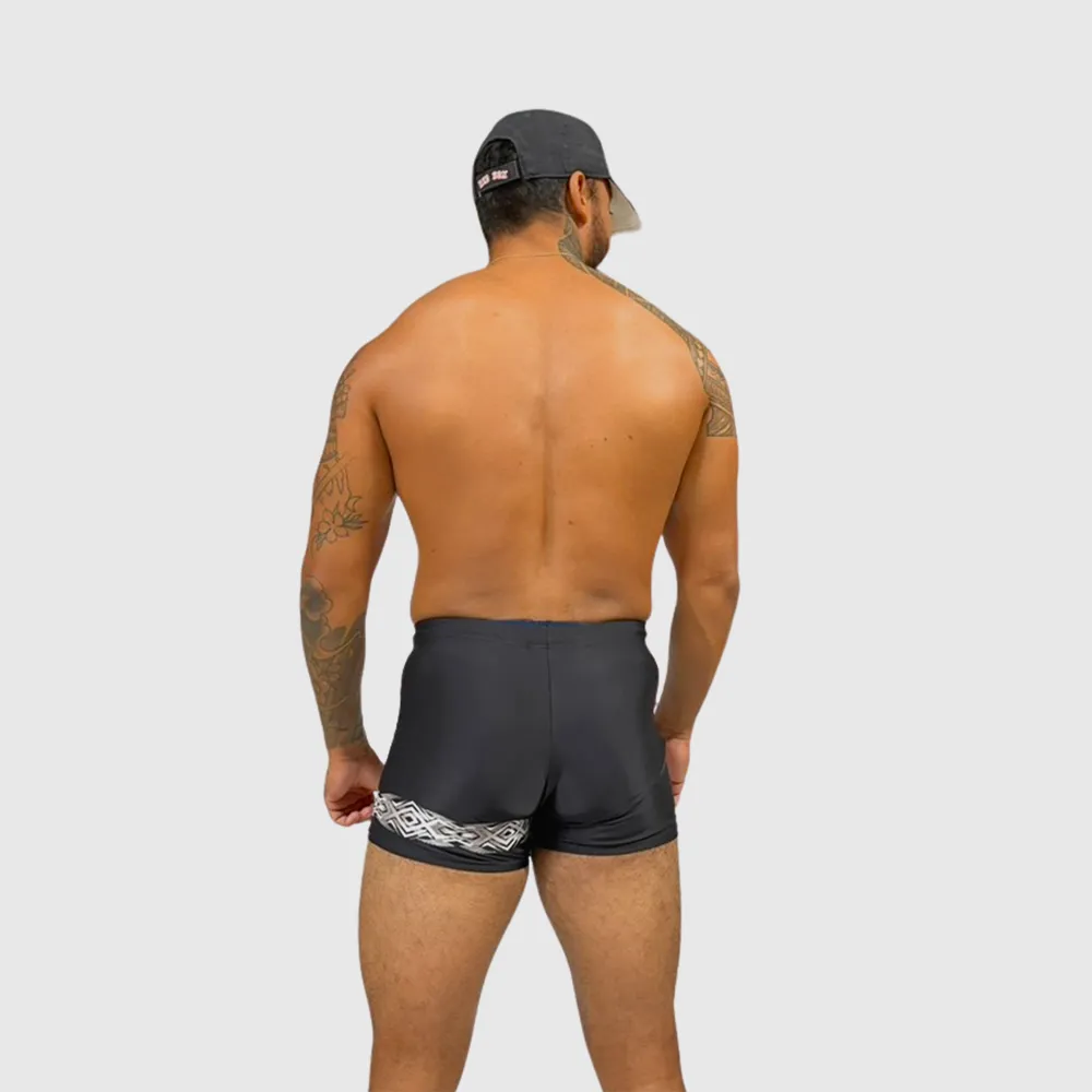 Shorty de bain homme noir avec bande graphique – maillot de bain homme moderne et ajusté
